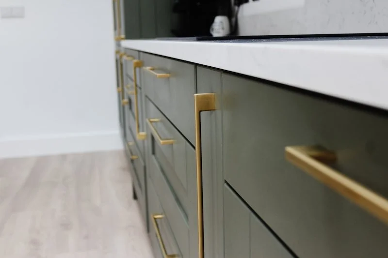 Features: Removal of a load bearing structural wall between the existing kitchen and dining room. Reconfiguration of the existing hall and utility space to include a new extensive utility room. We blocked up and filled the double doors into the existing front living room to allow for more valuable wall space. We then removed most of the lean two and pushed out with a single storey flat room extension with a large slider and purge window to the rear. We also included two large, fixed room windows to bring light into the existing footprint of the home. The new kitchen was hand painted in a rich green with a silver-grey island with a quart countertop and then the brass hardware and lighting simply elevated this stunning open plan kitchen, dining and living space.